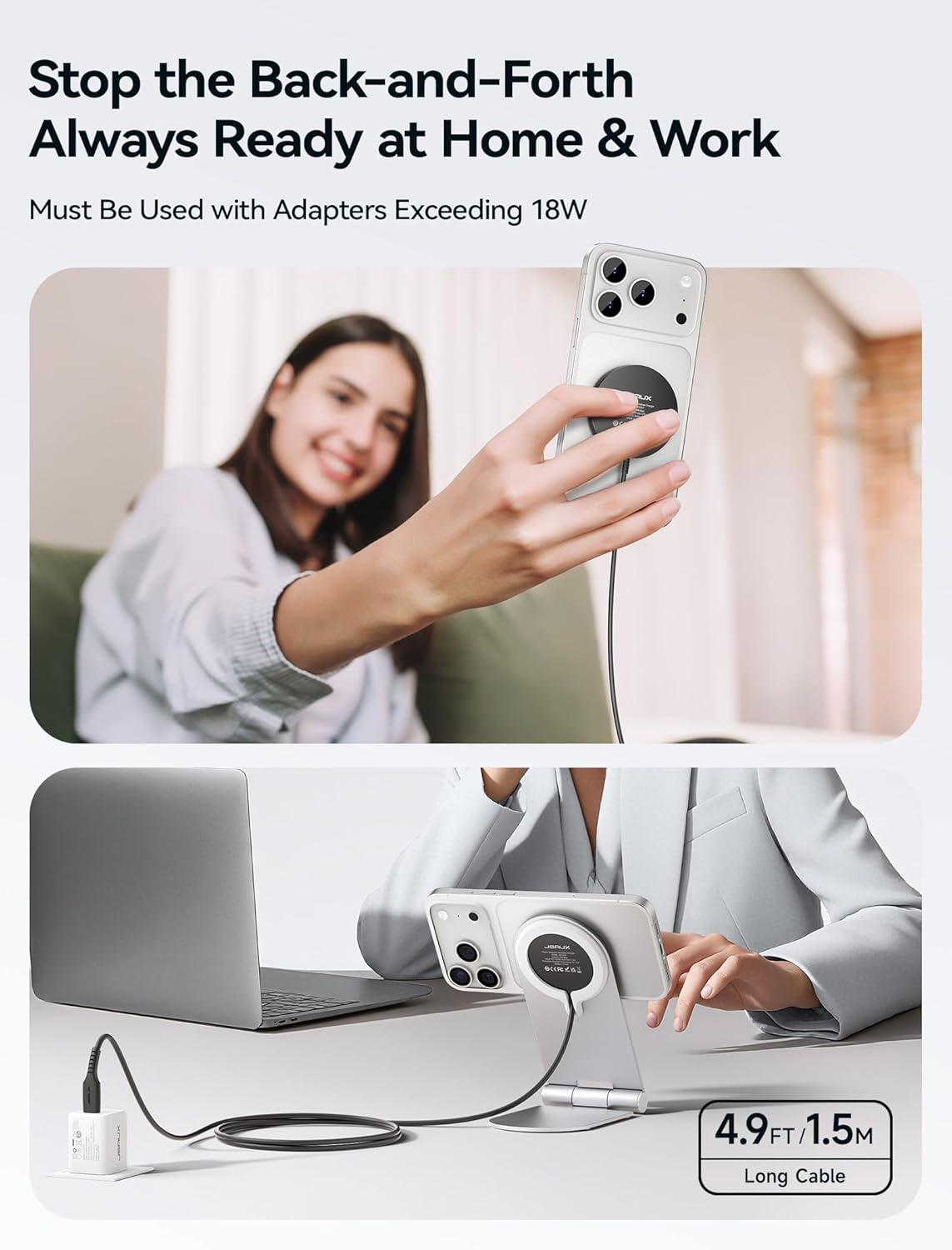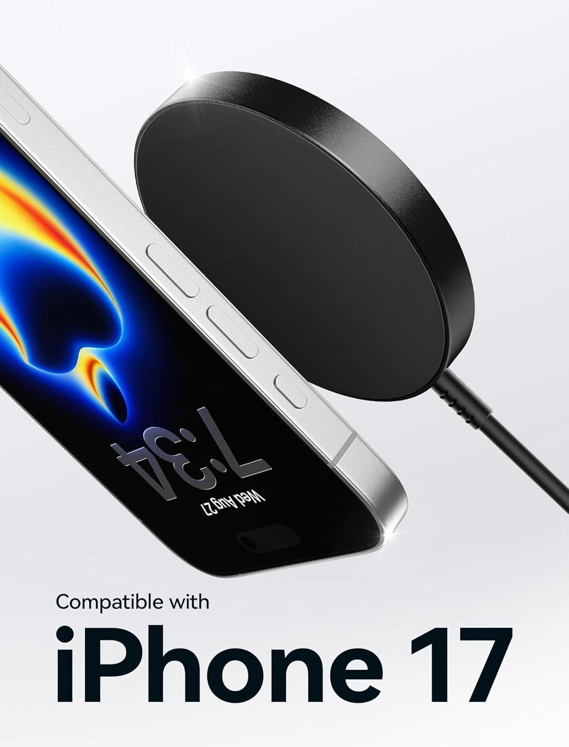 15W Fast Mag-safe Charging: Tested by engineers to fully charge an iPhone from 0% to 100% in just 3 hours — three times faster than the original 5W Apple charger. This magnetic wireless charger provides a fast and safe charging experience with up to 15W max output (7.5W max for iPhone). Important: To ensure safe and reliable charging, devices running iOS 16/17 or iPhone 17 series models may take slightly longer to fully charge due to enhanced power management and heat protection.