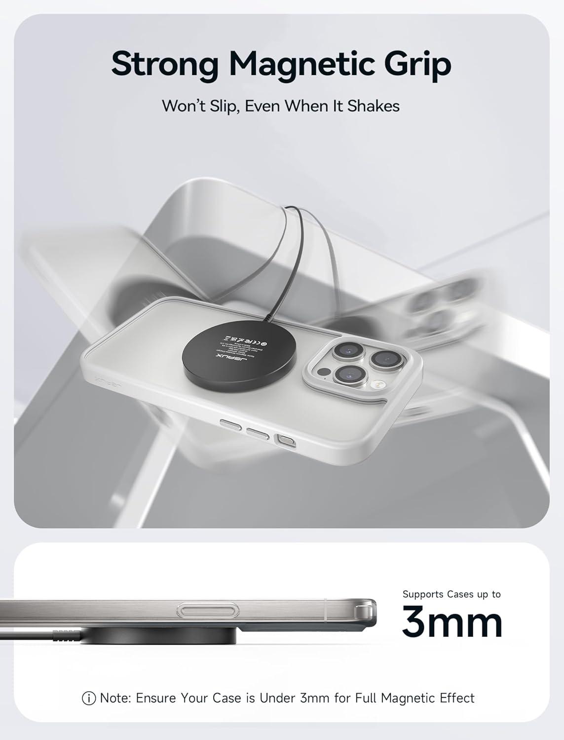 Smart Protection: Just like original Mag-Safe charger, your iPhone may feel slightly warm while charging with the JSAUX magnetic wireless charger — this is normal. To help extend battery lifespan, the software may limit charging to 80% if the battery becomes too hot.