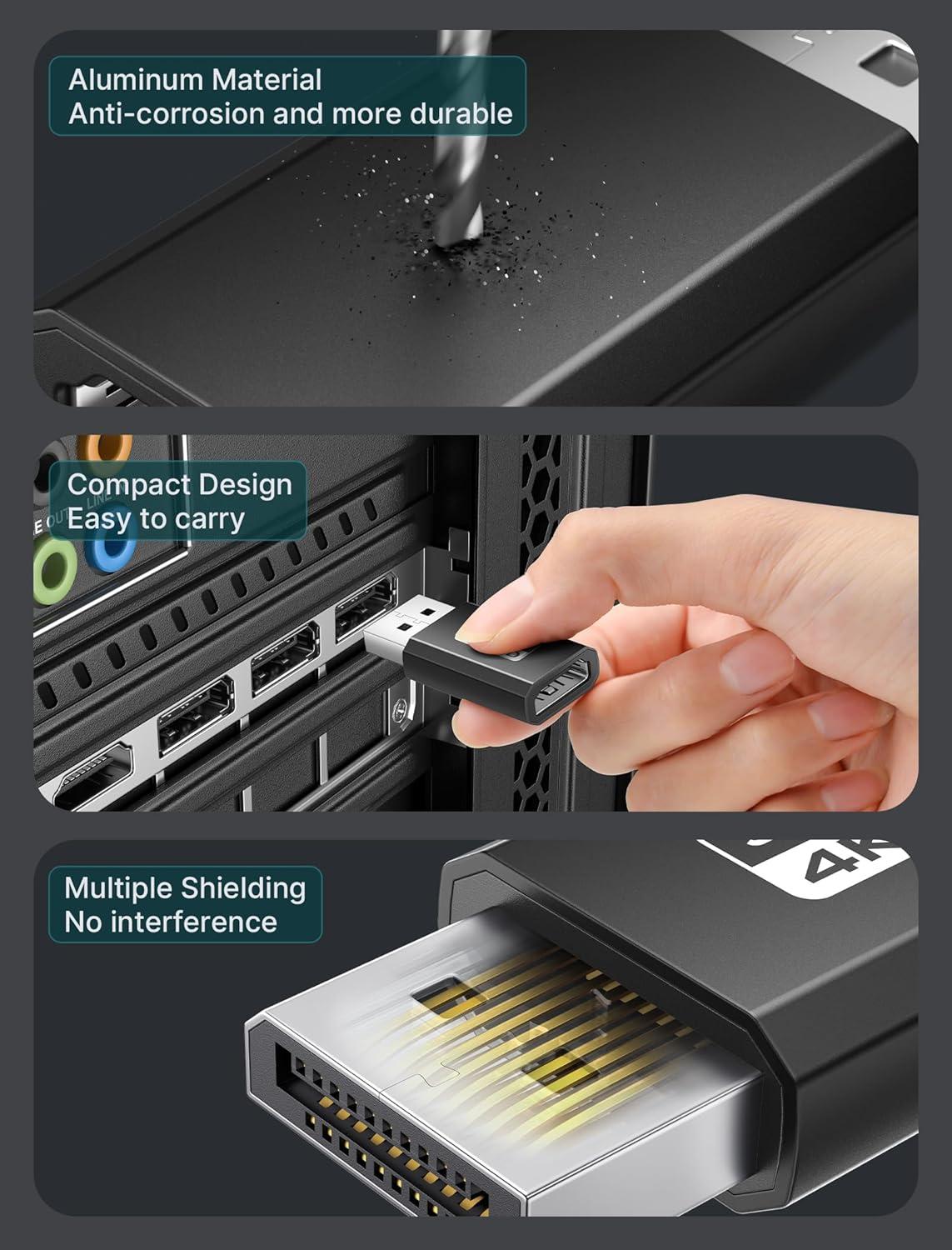 【Great value 2-pack】: Unique compact design, with the combination of two outfits, allows you to have more choices in application scenarios without worrying about usage issues(Not USB, only DP to HDMI adapter)