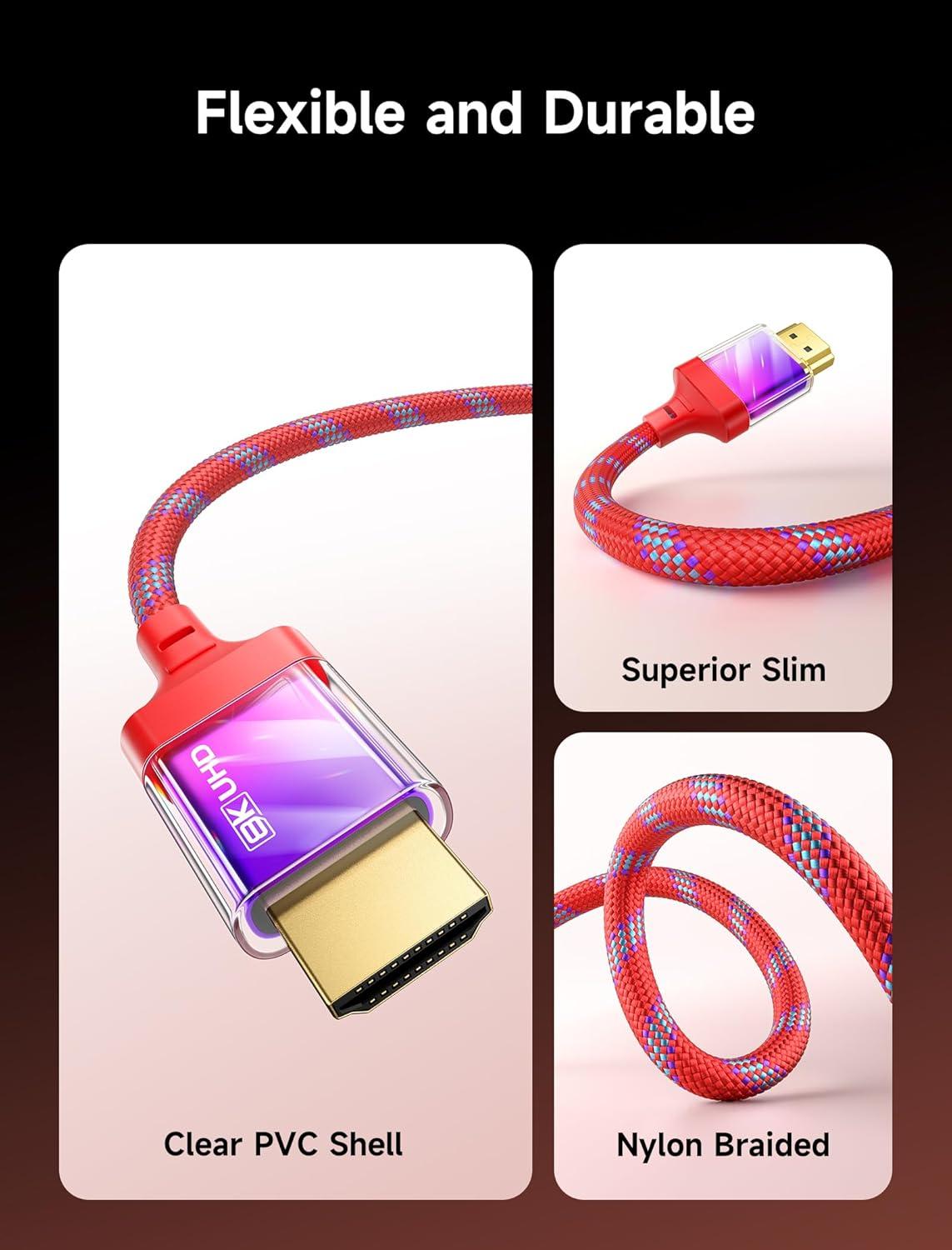 【Perfect 10ft length】The perfect length 10ft of this HDMI 8K nylon braided cable could enlarge the scenes in your daily life. Besides the scenes of other shorter cables applied for, you could also connect your devices to your TV while siting on a couch or bed at home or in a hotel.