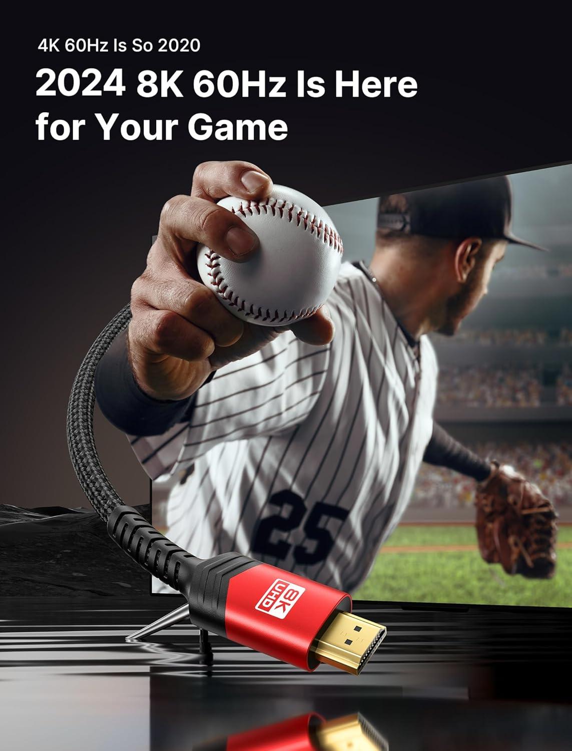 【Perfect 10ft length】The perfect length 10ft of this HDMI 8K nylon braided cable could enlarge the scenes in your daily life. Besides the scenes of other shorter cables applied for, you could also connect your devices to your TV while siting on a couch or bed at home or in a hotel.