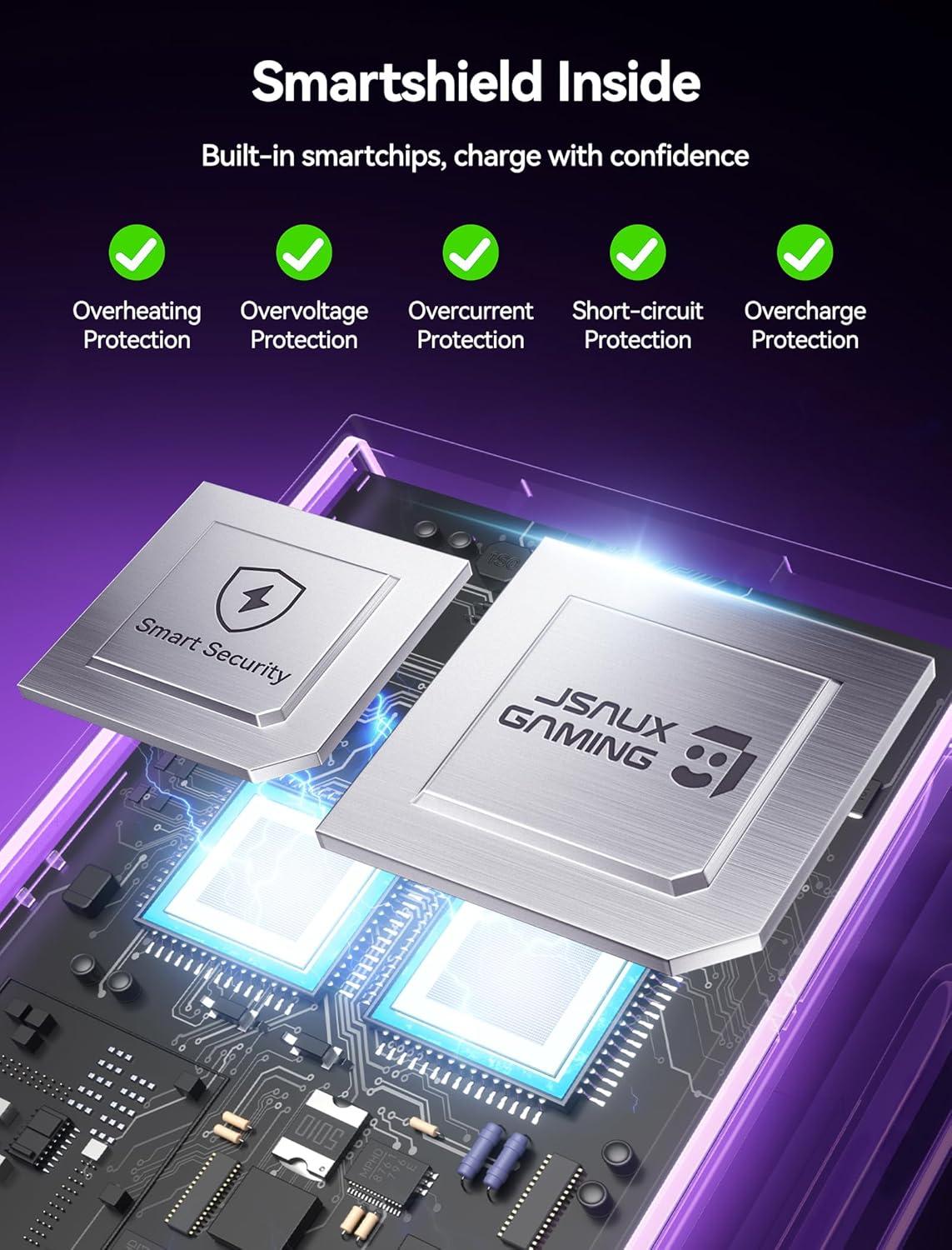 Smart Multi-Level Safety Protection: Equipped with an intelligent chip that provides comprehensive charging safety. Built-in safeguards include protection against short-circuiting, overcurrent, overvoltage, overheating, and overcharging. Keeps your JoyCons safe and extends their lifespan.