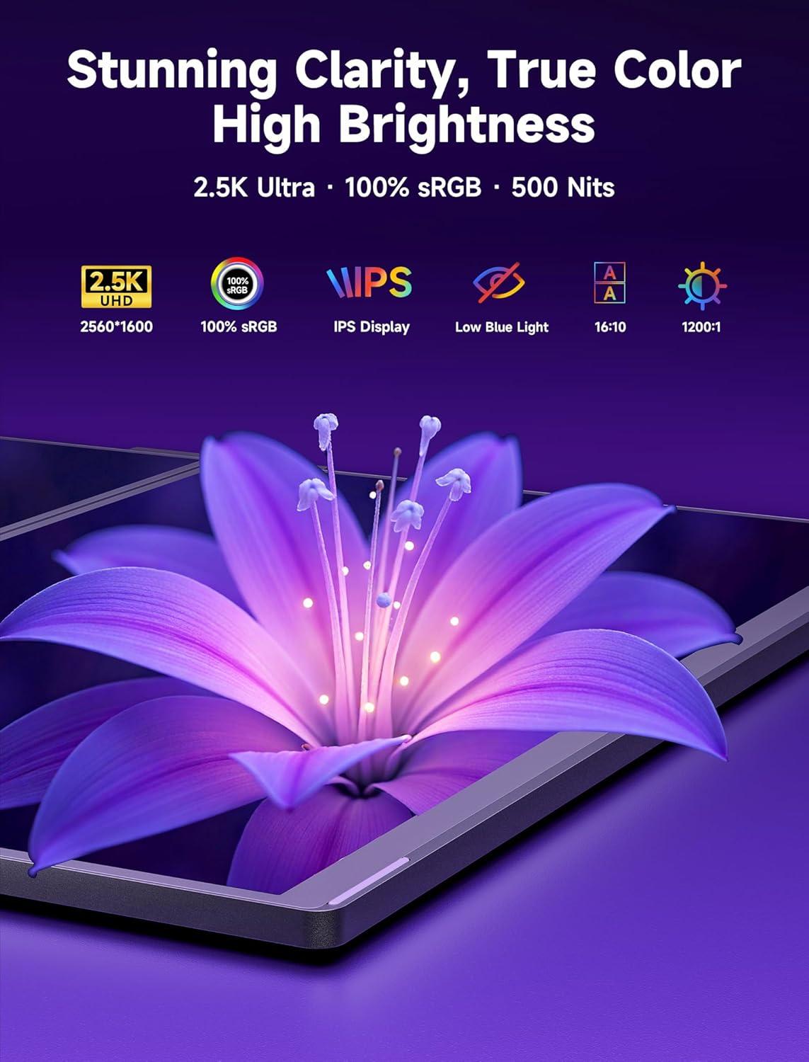 【Dual 2.5K Screen】The JSAUX FlipGo TouchScreen 16-inch IPS monitor supports dual 2.5K high-resolution displays. It features a 100% sRGB color gamut, a 16:10 screen ratio, 500 nits screen brightness, and a 1200:1 contrast ratio. FlipGo aims to establish a new standard in high-quality portable displays, born for users who prioritize excellence