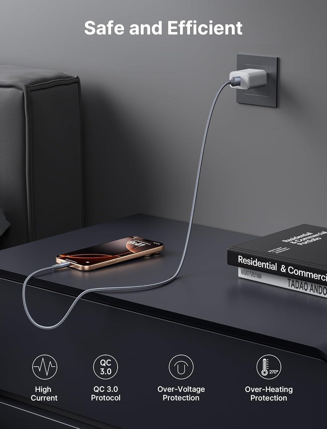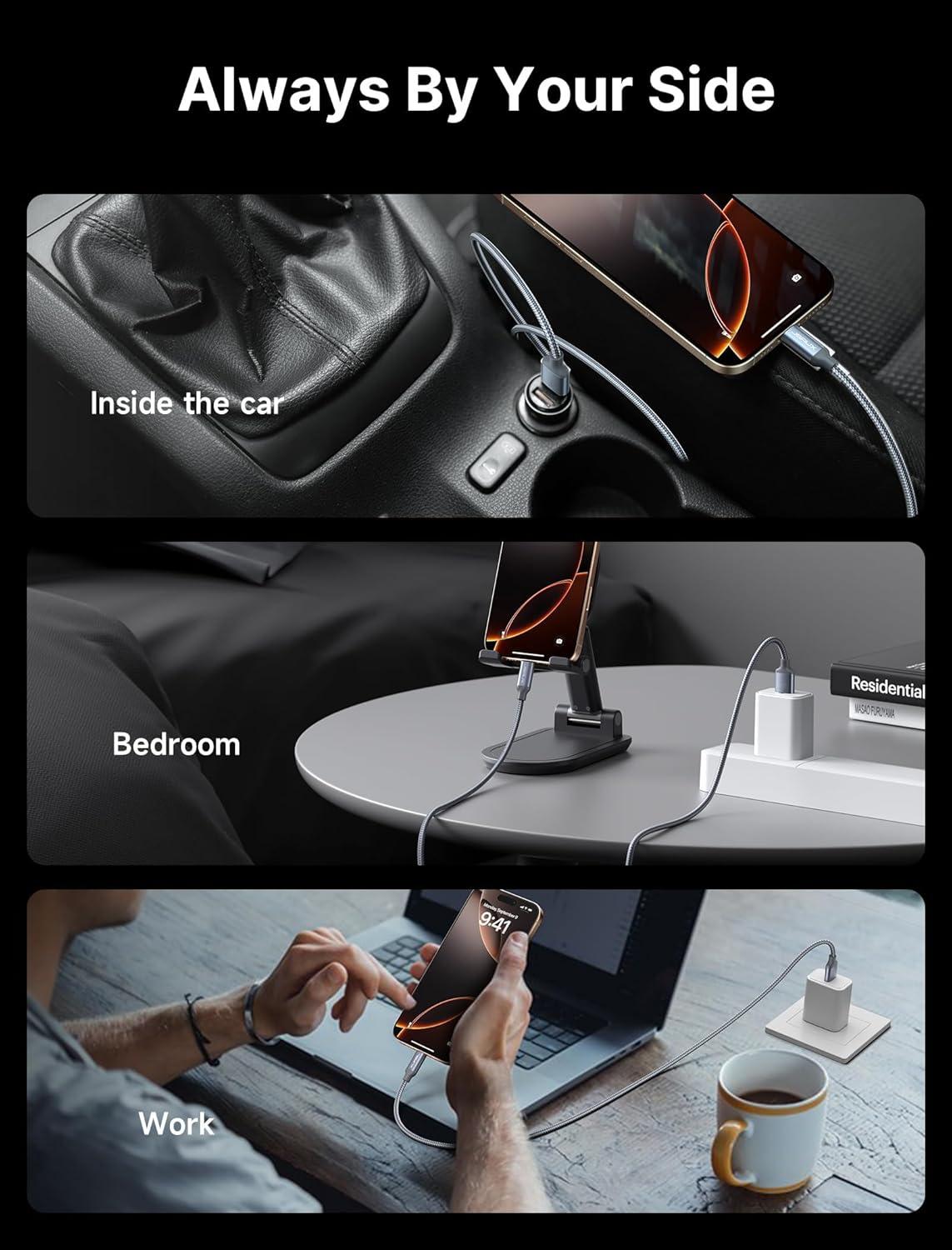Compatibility List: We provide 2-Pack 6.6FT Braided USB Type C Cable. Can fast charge and sync well compatible with iPhone Air/iPhone 17/iPhone 17 Pro/iPhone 17 Pro Max, iPhone 16e/iPhone 16/16 Plus/16 Pro/16 Pro Max, iPhone 15/15 Plus/15 Pro/15 Pro Max, Samsung Galaxy S25/S24/S23/S22/S21/S20/S20+ Ultra S10 S9 S8 Note 20 10, A51/A50/A12/A11, Moto Z/Z2, LG G5/G6/V20/V30 and other USB C devices. Note: Supports only 7.5W charging speed for iPhone 15/16/17 series.