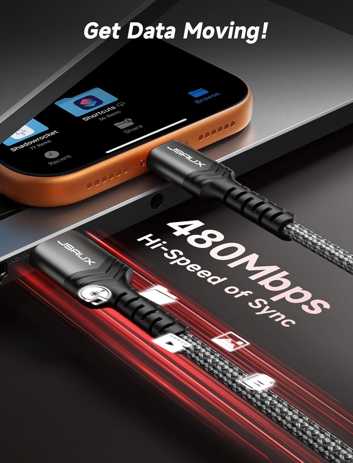 3.1A Fast Charging and Sync: 3.1A Fast Charge, Transfer speed can reach 40~60MB/S (480Mbps), JSAUX USB C Cable accelerates the charging speed by delivering 5V/3.1A safe charging power, [25% faster] compared with other cables which provide 5V/2.4A output.