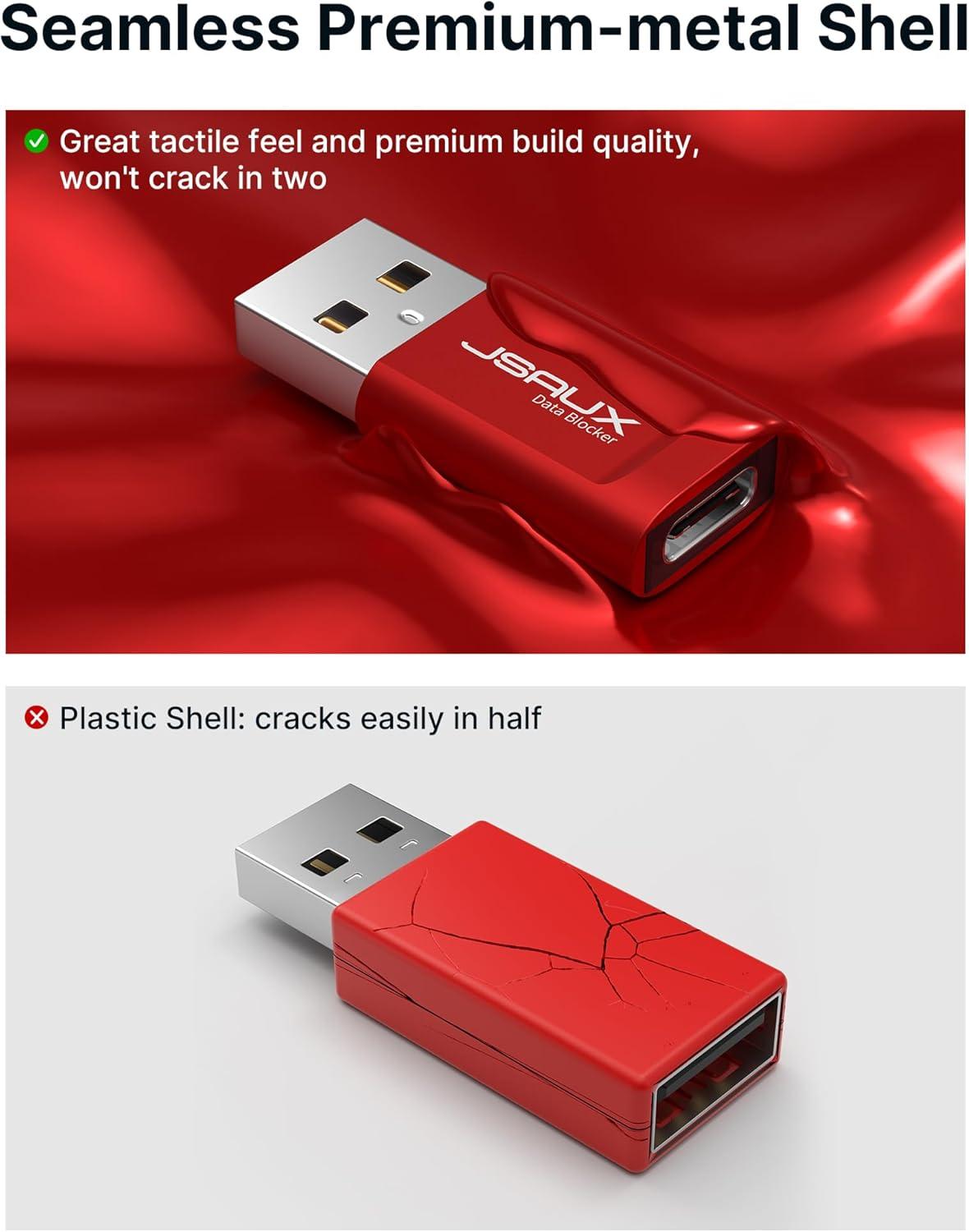 Metal & Non-Slip design: Compared with other USB C data blocker, We use premium Aluminum shell add better durability, preventing internal chips and circuits from breaking. Non-Slip Design for easier insertion and removal