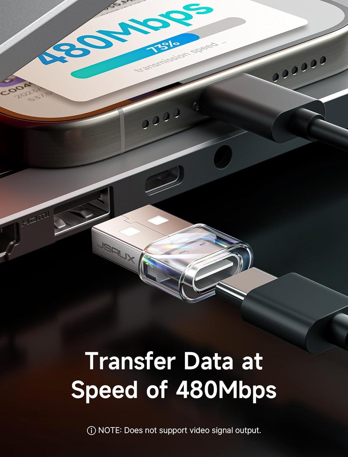 Stylish & Robust: The JSAUX USB to USB C adapter features a transparent, high quality PVC casing that offers insulation, heat resistance, and fireproofing. They're both a fashion statement and a reliable, long-lasting accessory that complements any cable