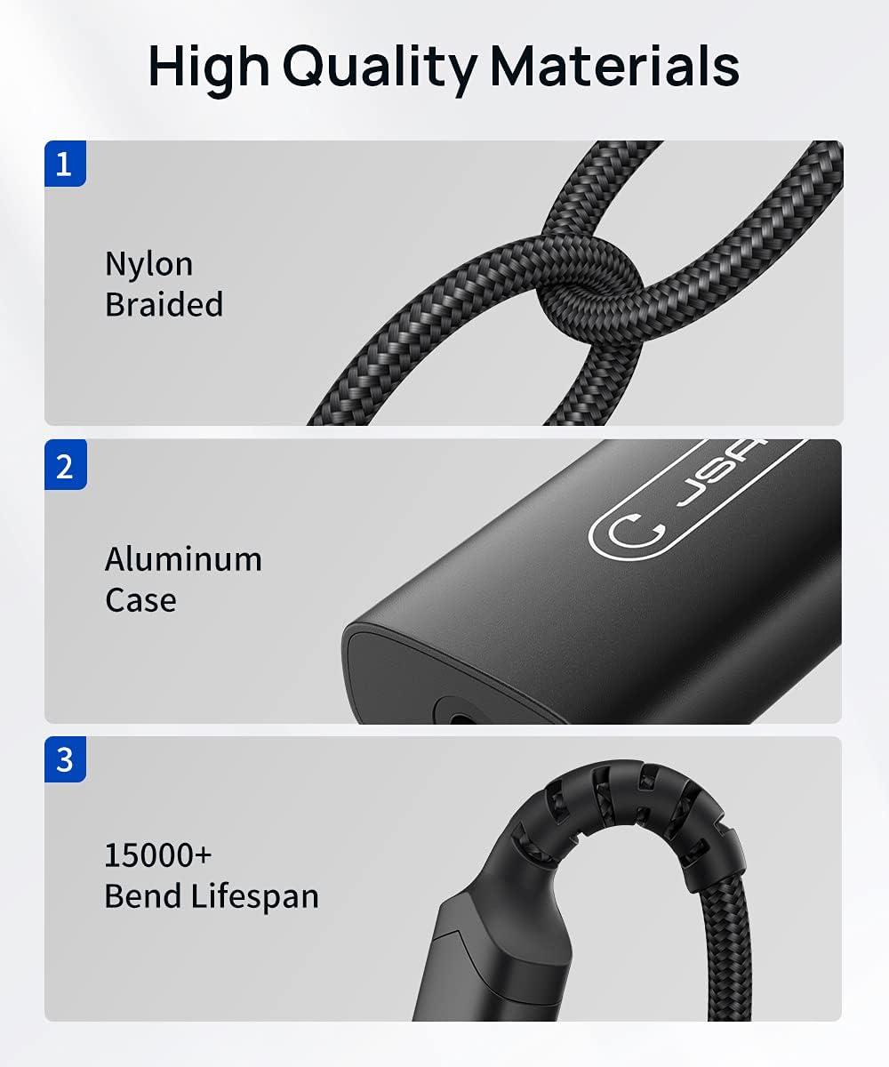 【Supports the PD and QC Charging Protocol】 JSAUX USB C audio adapter can support up to PD 60W charging protocol, QC2.0 and QC3.0. The maximum charging power of the headphone adapter is 9V / 3A. To achieve fast charging, please use original wall charger and fast charging cable. Note: The USB C port of the headphone adapter only supports charging, not data transfer.