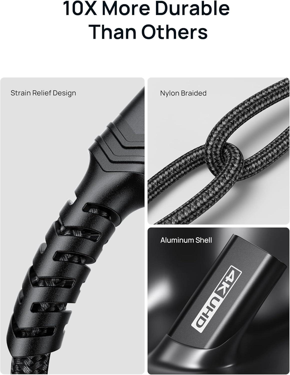 【Compact & More Durable】: Compact and lightweight, with user-friendly non-slip design for easier plug and unplug. Braided nylon cable for extra durability. Premium aluminum casing for better heat insulation. Fits snugly with the USB C ports on your devices, better signal transfer protection