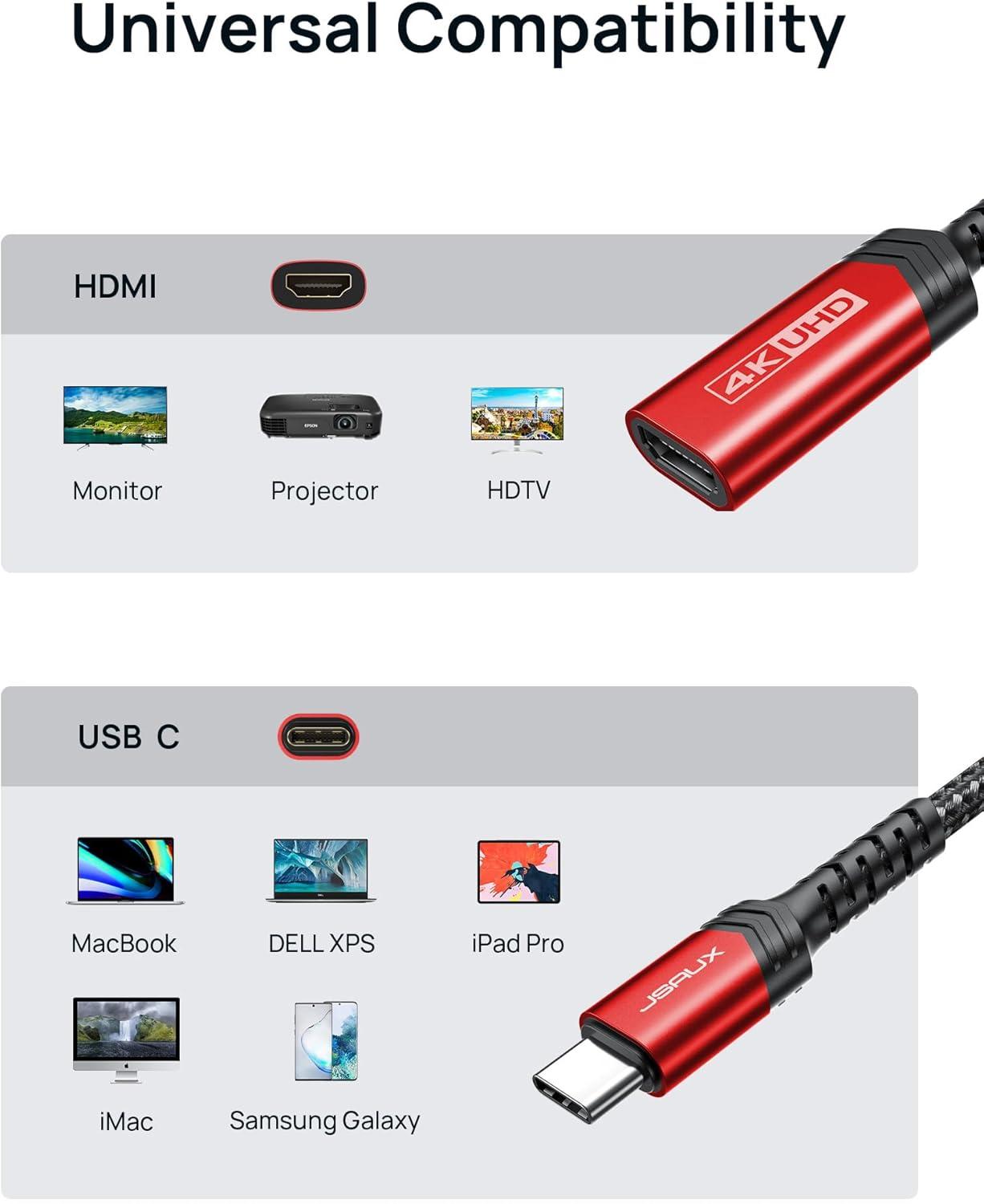 【USB C to 4K HDMI Adapter】Offering 4K resolutions up to 3840×2160 at 30Hz. JSAUX USB C to HDMI Adapter delivers a clean, vivid, seamless videos.Only USB C to HDMI [Non-bidirectional]