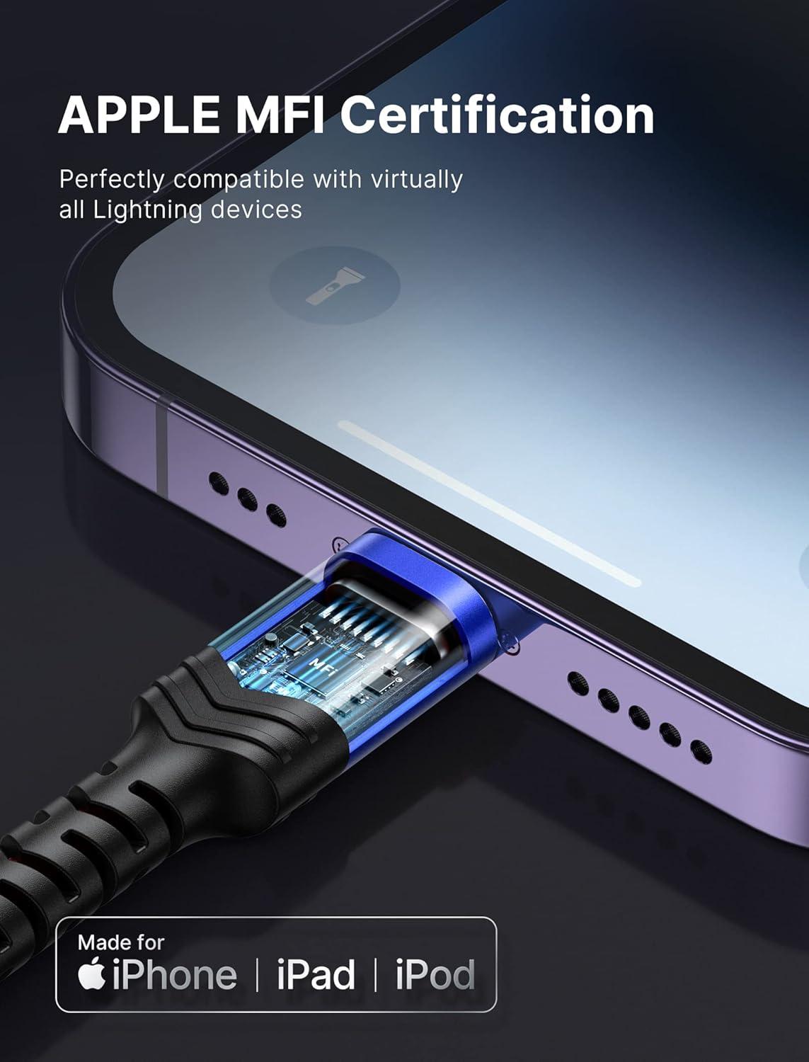 New APPLE C94 Connector: This cable uses the Newest C94 lightning end which is specially designed for fast charging, whose color is different from the previous C48 lightning end. Charging Speeds 3× Faster than USB A to Lightning Cable.