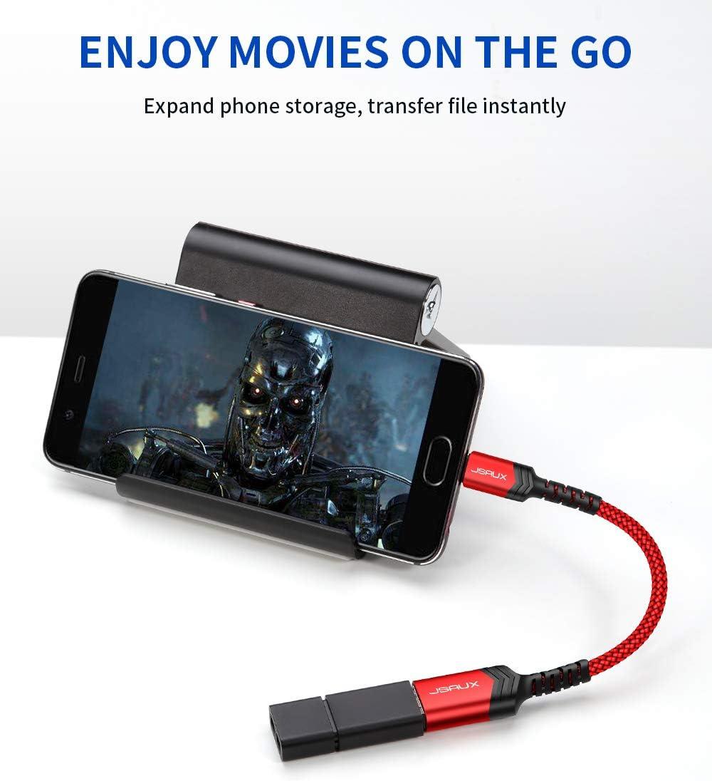 JSAUX USB C to USB Adapter [2 Pack], Type C 3.0 OTG Cable On The Go Type C Male to USB A Female Adapter Compatible with MacBook, iPhone 16 Pro Max/16 Plus/16e/15, Samsung Galaxy S25/S24/S23-Red(Grey)