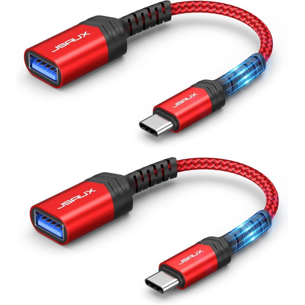JSAUX USB C to USB Adapter [2 Pack], Type C 3.0 OTG Cable On The Go Type C Male to USB A Female Adapter Compatible with MacBook, iPhone 16 Pro Max/16 Plus/16e/15, Samsung Galaxy S25/S24/S23-Red(Red)
