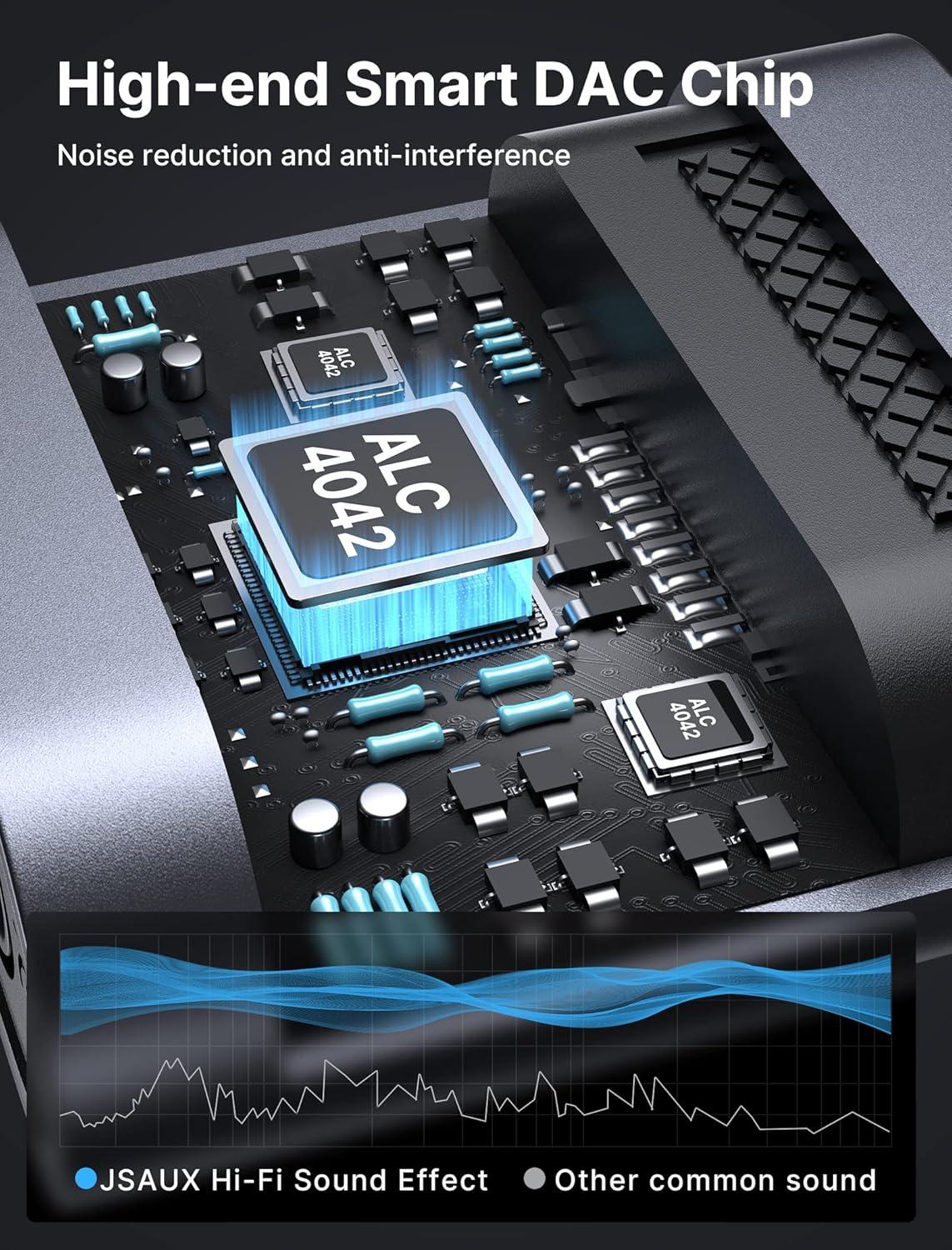 【Hi-Fi Sound】The inner chip support digital decoding, which can allow various functional formats to play and protects against electromagnetic interference. You can hear an improved bass performance, greater detail across the frequency spectrum, better attack speed, stereo, expanded soundstage and enjoy the best sound quality