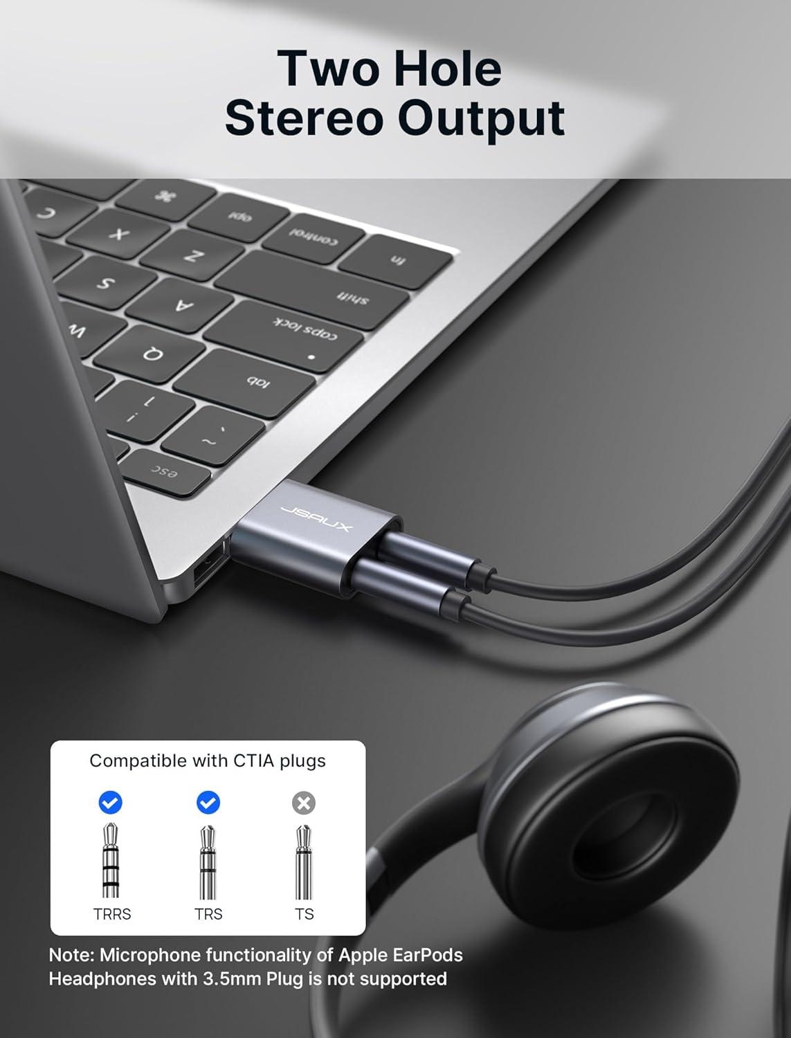 【Plug and Play】No drivers installation required, just easily plug and play. The USB to 3.5mm female port will be automatically recognized by system in seconds. No driver download required, USB bus-powered, no external power required. Note: Microphone functionality of Apple EarPods Headphones with 3.5mm Plug is not supported